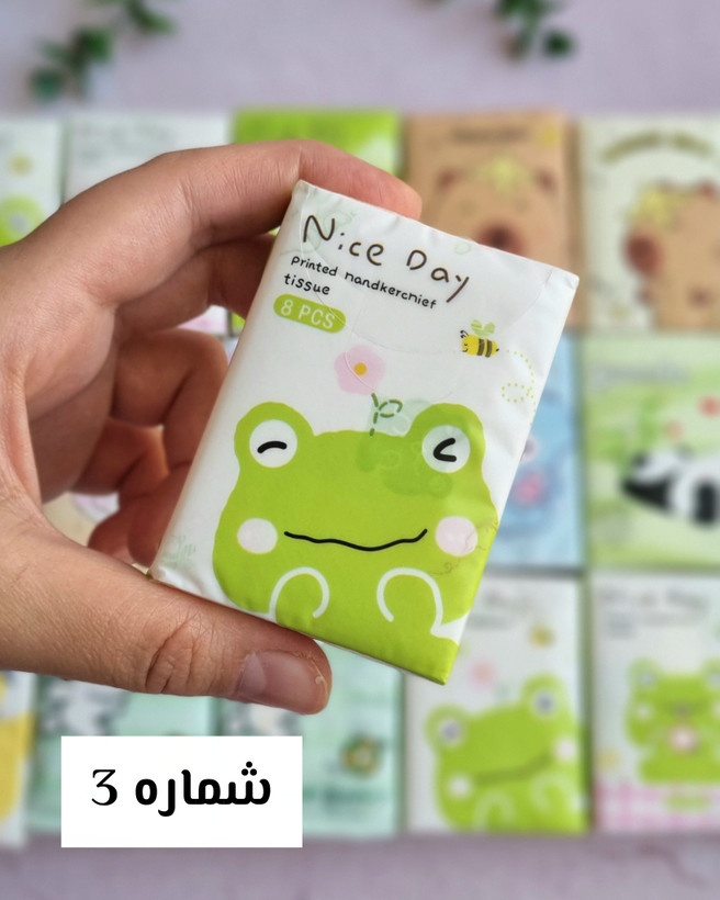 سایر توضیحات: هر بسته ۸ عدد دولایه ضخیم داره🥰،همه دستمال های طرحدارن😍،با کیفیت عالی و بسته بندی جذاب🥰