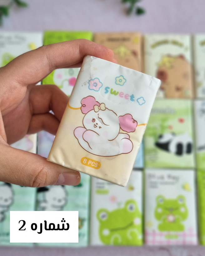 سایر توضیحات: هر بسته ۸ عدد دستمال دولایه ضخیم داره🥰،همه دستمال ها طرحدارن😍،با کیفیت عالی و بسته بندی جذاب🥰