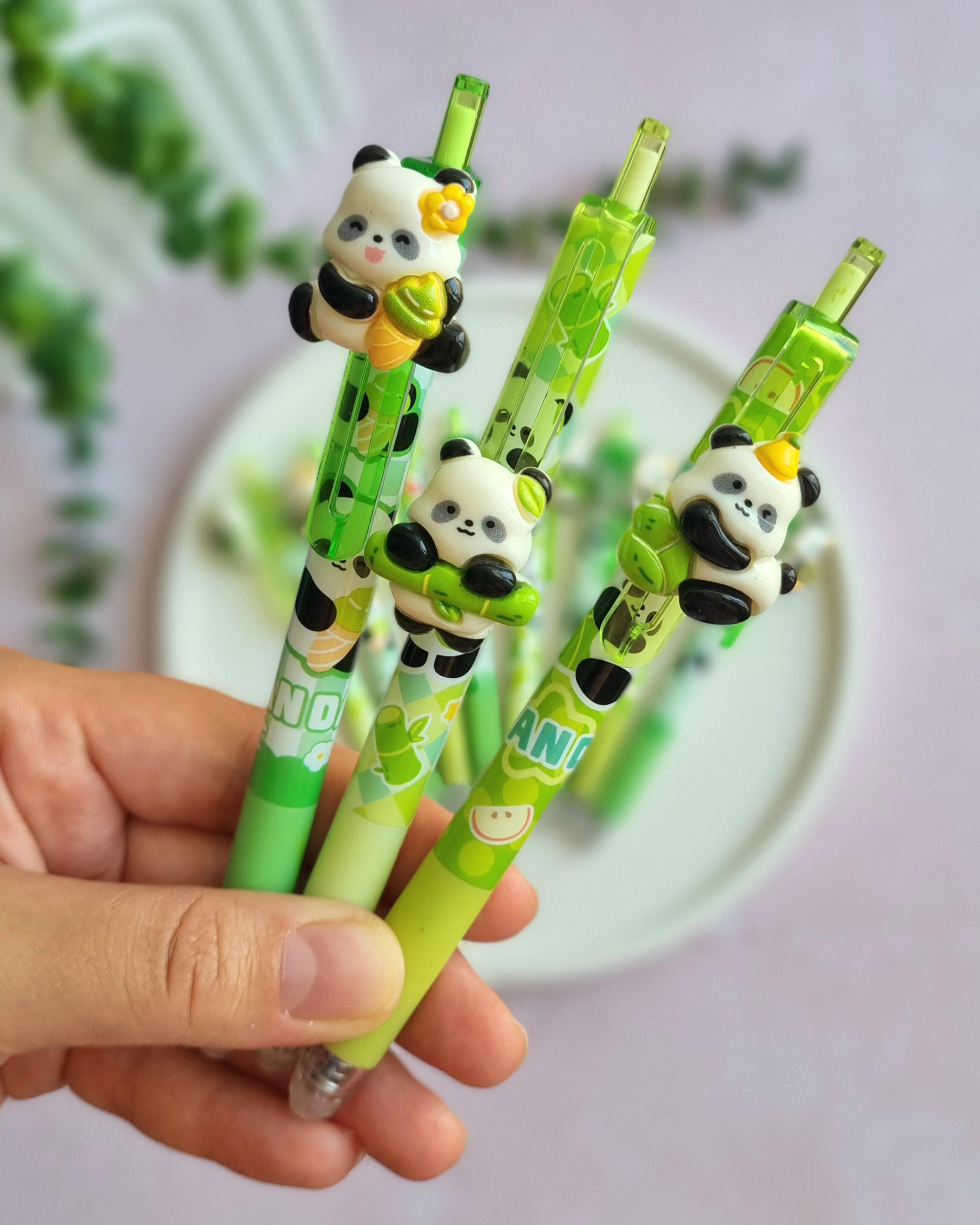 توضیحاترواننویس پاندا کیوت بسیار باکیفیت✅️استیکر پاندای روی خودکار متحرک هس😍،رنگ جوهر آبی🩵ضخامت نوک خودکار 0/5✅️